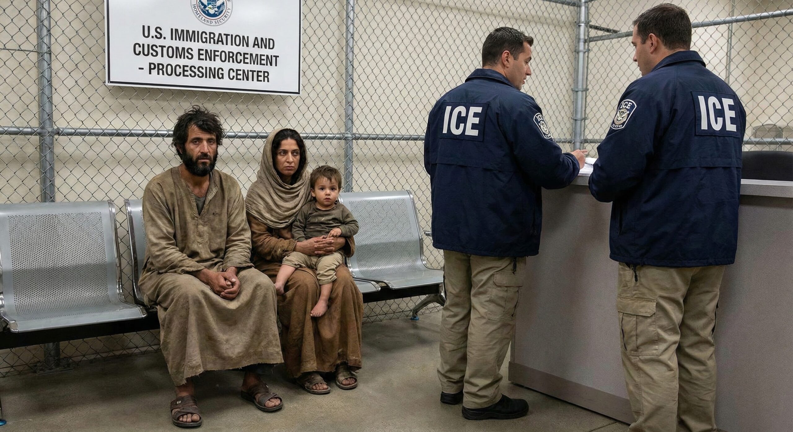 AI-generated image from Nano Banana Pro in Gemini with prompt: “Mary and Joseph with a toddler Jesus being detained by ICE for deportation from the United States. Mary, Joseph, and Jesus all appear as first-century Jews with the expected coloring.”